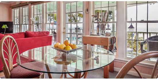 with Rocking Chairs and Dining Table on Porch.